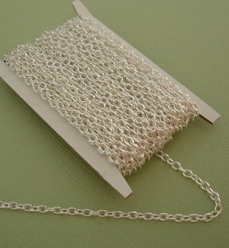 [Product Information]- 15ft Spool-Bright Silver Plated Round Cable Unfinished Chain-3x2x0.6mm Jewelry Making Supply.
