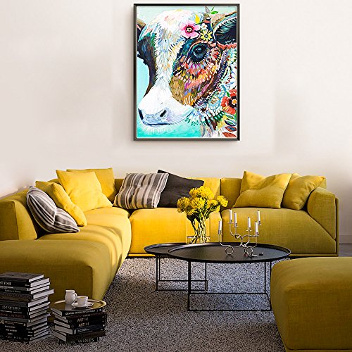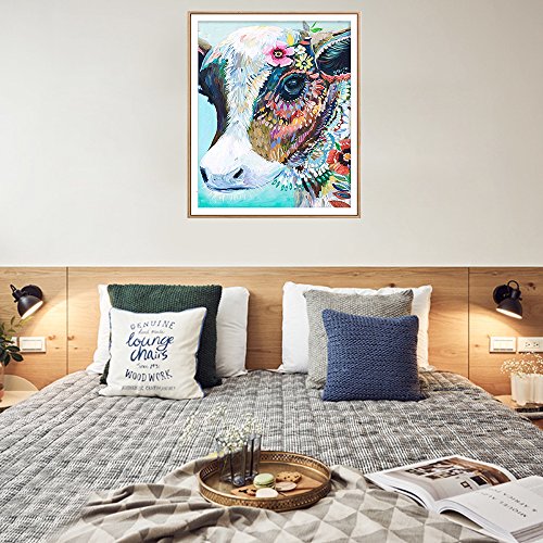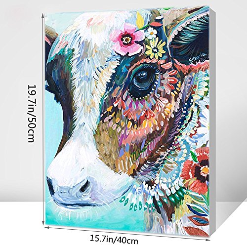 DIY Oil Painting Paint by Number Kits DIY Canvas Painting by Numbers Acrylic Oil Painting for Adults Kids Arts Craft for Home Wall Decor Colourful Cow