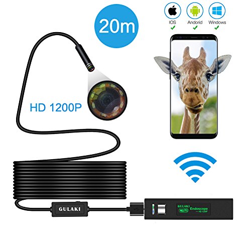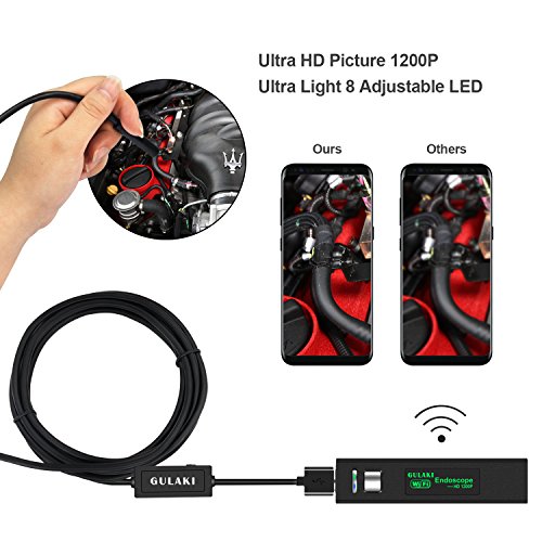 Wireless Endoscope, GULAKI Wifi Borescope Inspection Camera IP 68 Waterproof Snake Camera with 8 Adjustable LED 3.5M Cable 1200P HD Picture for Android & IOS Smartphone, iPhone, Samsung