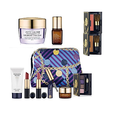 -. Feature : Advanced Night Repair Serum II 0.24oz and Advanced Night Repair Eye II 0.17oz / Sell Random Choice of Moisturizer 0.5oz: Resilience Lift Firming/Sculpting Face and Neck Creme SPF 15, Revitalizing Supreme Global Anti-Aging Creme, or Advanced Time Zone Age Reversing Line/Wrinkle Creme SPF 15 / Seller Random Choice of Makeup Palette: Eyeshadow, Bronzer, or Blush Compact: Pure Color Blush in Pink Kiss, Bronze Goddess Powder Bronzer, or Pure Color EyeShadow Quad in Tranquil Moon, Wild Truffle, Amethyst Spark, and Lavish Mink / (2) Pure Color Long Lasting Lipsticks in Hot Kiss and Pinkberry; Sumptuous Bold Volume Lifting Mascara in Black 0.1oz / Modern Muse Body Lotion 1oz