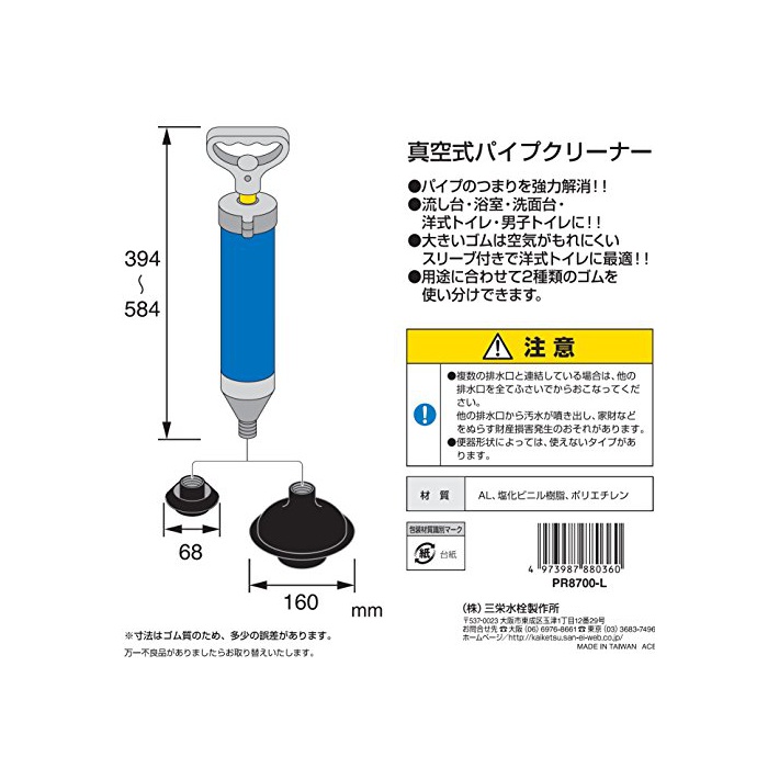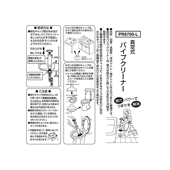 3 영수 전제작소(SAN-EI) 3 영수전 【진공 파이프 클리너】 서양식 화장실용 PR8700-L