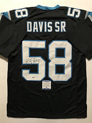 Autographed/Signed Thomas Davis Sr. Carolina Panthers Black Football Jersey Beckett BAS COA