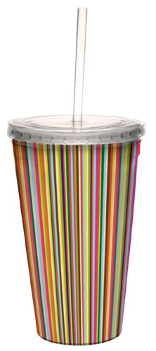 Tree-Free Greetings cc33516 Graphic Candy Stripe by Carolyn Gavin Artful Traveler Double-Walled Cool Cup with Reusable Straw, 16-Ounce, Multicolored