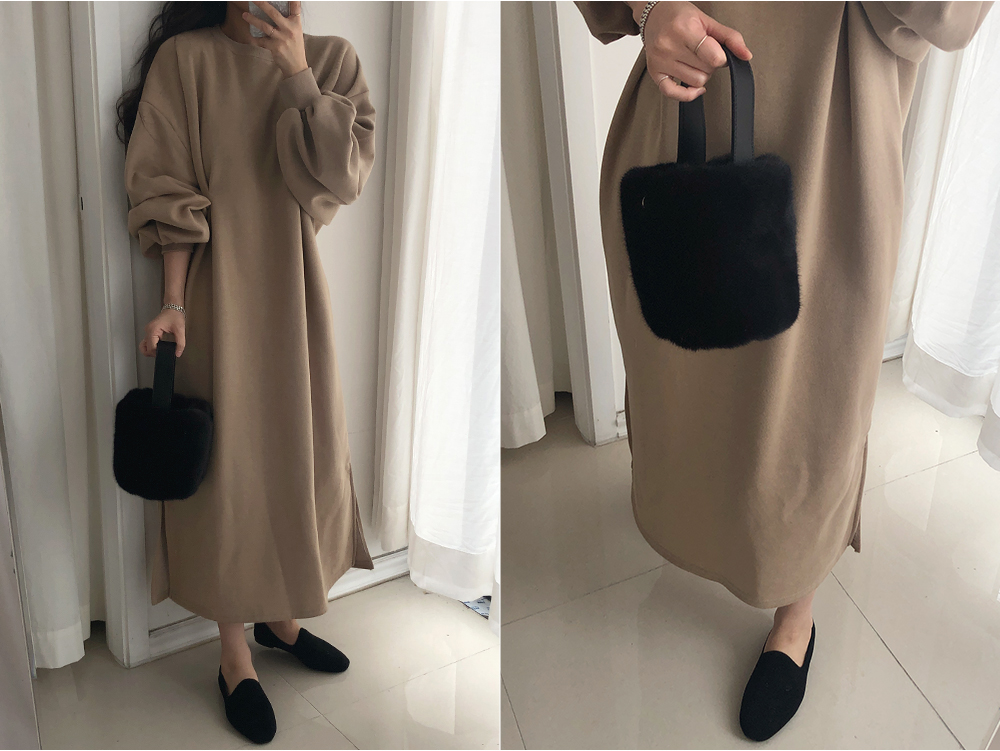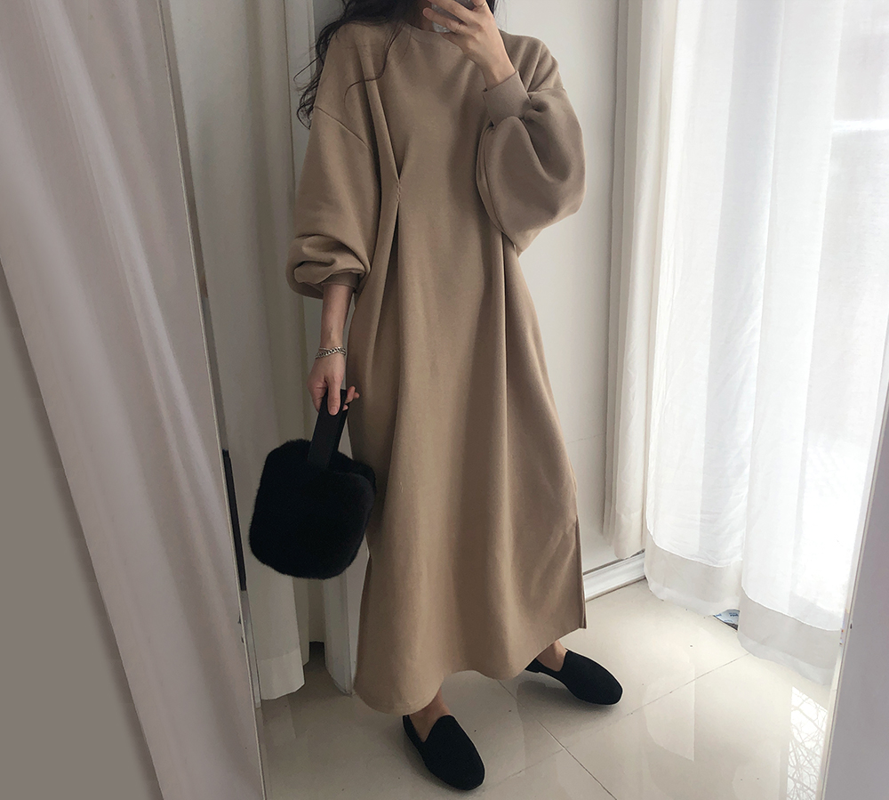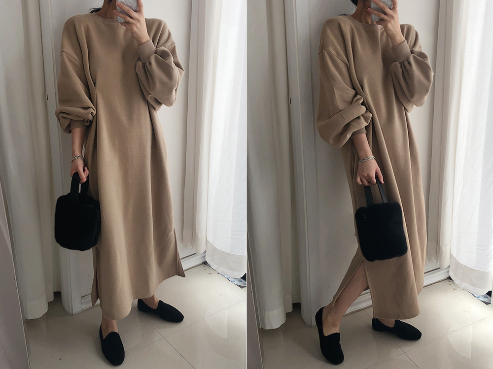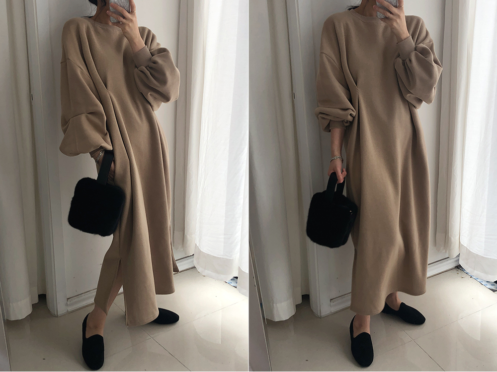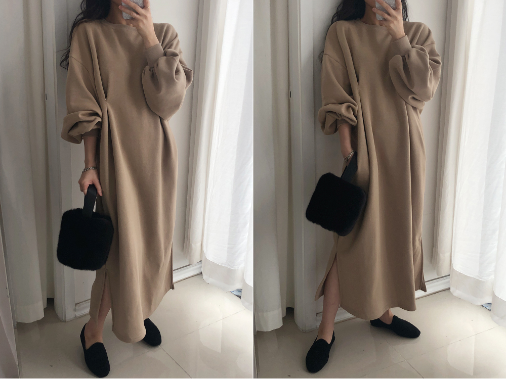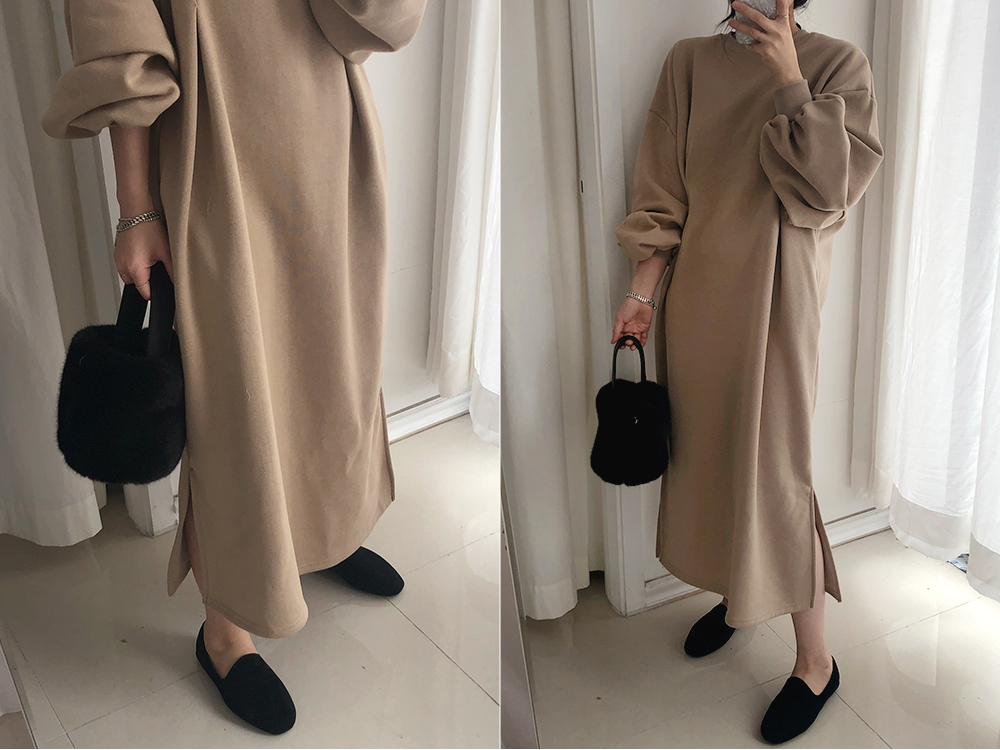 퍼프 롱 기모 맨투맨 원피스