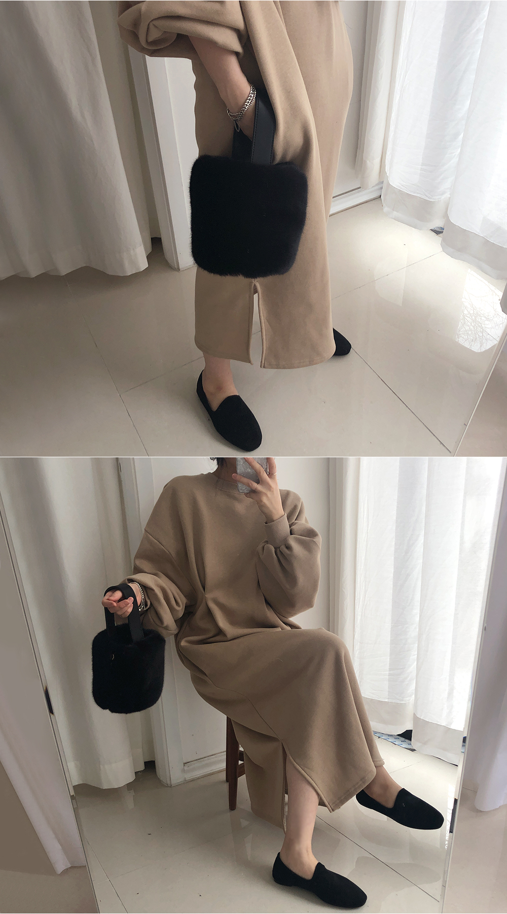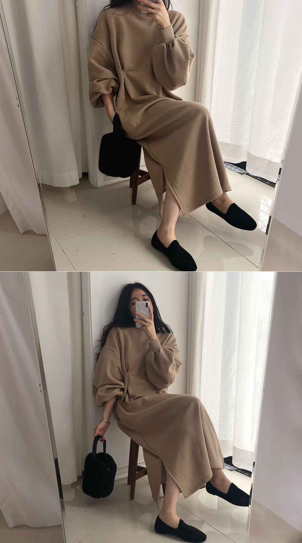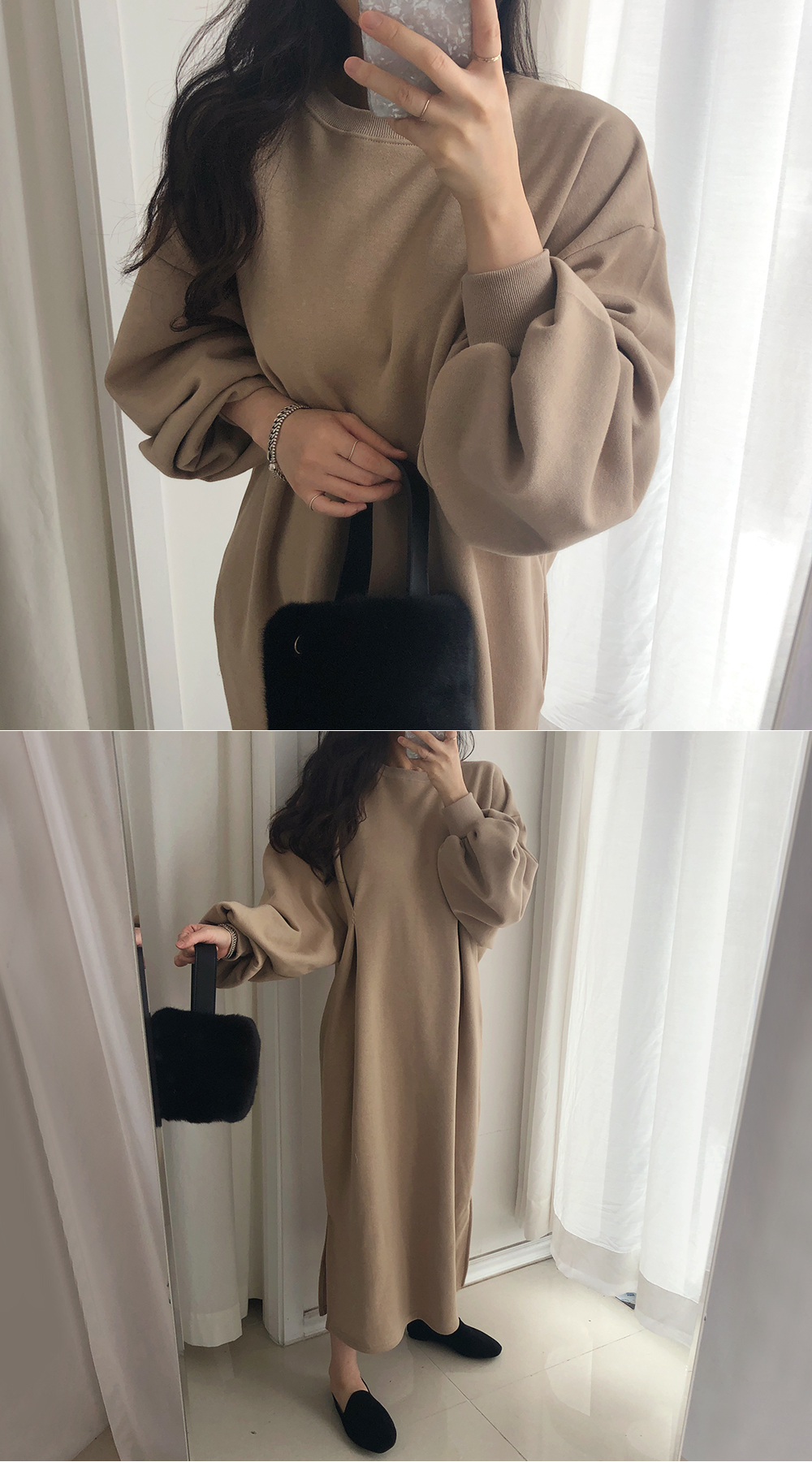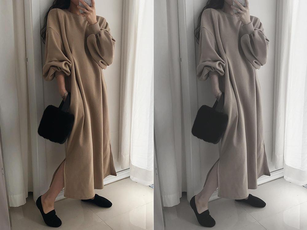 퍼프 롱 기모 맨투맨 원피스