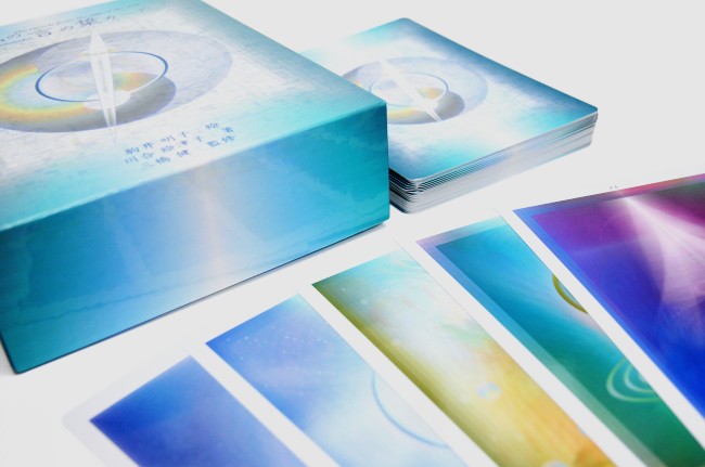 | この『神代の言の葉カード』は、美しい色彩のハーモニーを産み出し続けるヒーリングアーティストの駒井明子がその豊かな感性で神々さまの姿を表現し、神道についての研究者である川合絵津子が各神社に参拝して神々さまより頂いたお言葉をまとめたものです。遠い神代から降りしきる言の葉に、耳を傾けてみてください。きっと神代から遠くは離れたこの時代を生きるために必要なメッセージが、そこには込められているはずです。 |