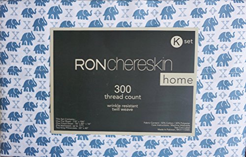 Ron Chereskin Bedding 4 Piece Cotton King Sheet Set Blue Elephants Animals on White Wrinkle Resistant Twill Weave