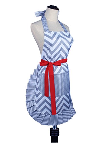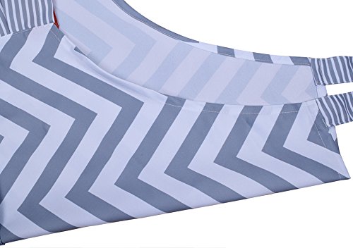 Women's Fashion Big Apron Baking Cooking Kitchen Apron Is Machine Washable with Front Pockets, Gray and White ZigZag Stripe, Chevron Gray