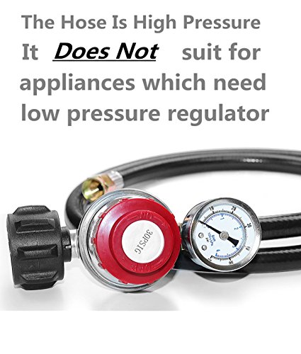 - Adjustable 0-30 PSI high pressure output propane regulator with 4 feet hose is a must have item for your propane burners, stove, turkey fryers, heaters, smokers. Not suitable for appliances which need LOW PRESSURE regulator.