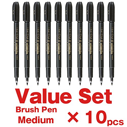 -. Title : Zebra Fude Sign Brush Pen, Medium, Value Set of 10 with Ecology Sticky Notes