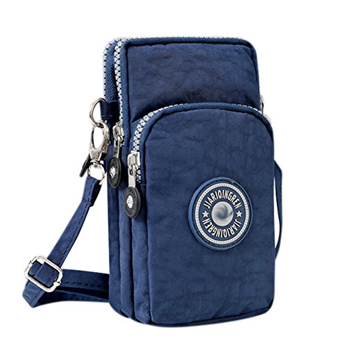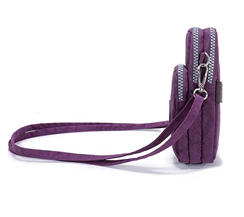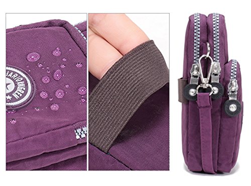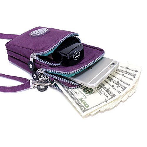 RARITY-US Women Crossbody 3 Zippers Waterproof Nylon Cell Phone Wristlet Purse Wallet Pouch Shoulder Bag