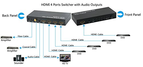 - Title : Etekcity 4 Port HDMI Switcher Selector with Audio, IR wireless remote, AC power Adapter, Supports 3D 1080P, Toslink, Coaxial, 3.5mm AUX Stereo