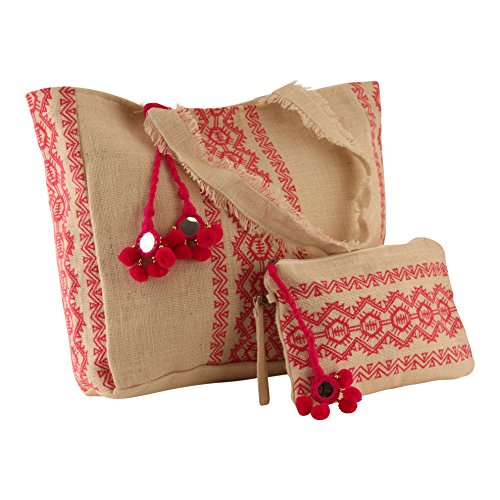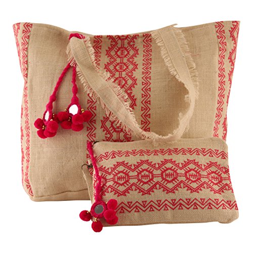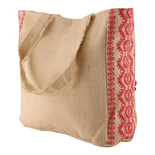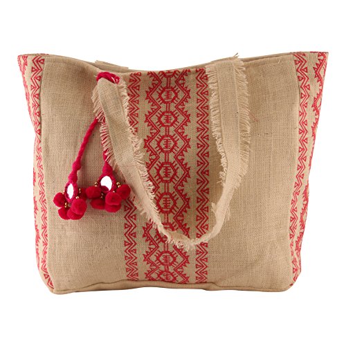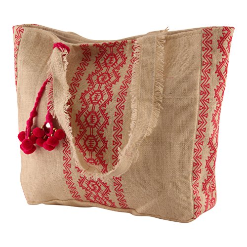 - Handmade from 100% natural jute, Detailed with hot pink embroidery and stitching