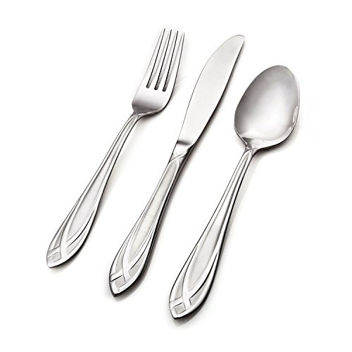 Hampton Forge 54 Piece Signature Lace Frosted Flatware Set With Wood Caddy, Metallic