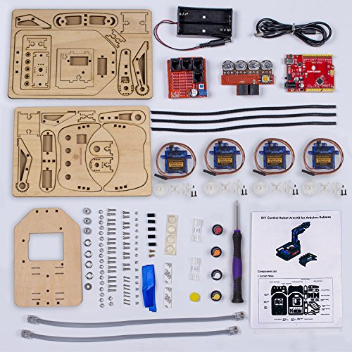 -. Binding : Toy -. Brand : SunFounder -. EAN : 0701715370173 -. Feature : The Rollarm is a 4-axis movement kit customized for robot hobbyists to learn to control the mechanical arm, with detailed user manual, code and introduction videos. / 2 controlling manners: manually (by handle) or by computer (Labview). / Able to memorize about 100 movements made. / Four servos compose and control the four joints, and grippers have double layers with pointed end and jagged edges - to grab objects firmly. / Made of wooden materials with light weight and fine texture, it brings you closer to nature. -. IsAdultProduct : 0 -. Label : SunFounder -. Manufacturer : SunFounder -. ProductGroup : Toy -. ProductTypeName : TOYS_AND_GAMES -. Publisher : SunFounder -. Studio : SunFounder -. Title : SunFounder Robotic Arm Kit DIY 4-Axis Wooden Mental Servo Rollarm for Arduino Uno -. UPC : 701715370173