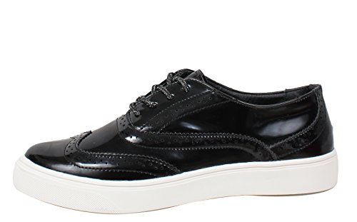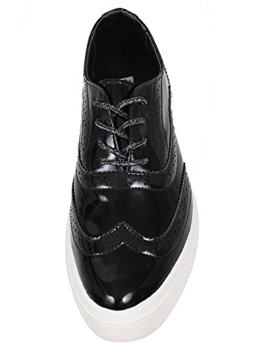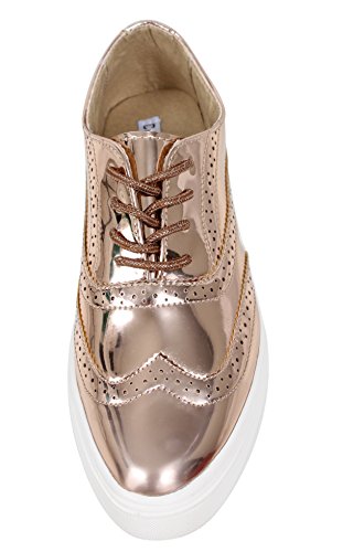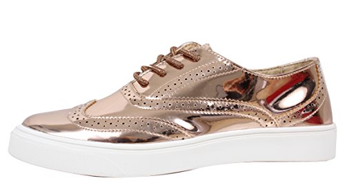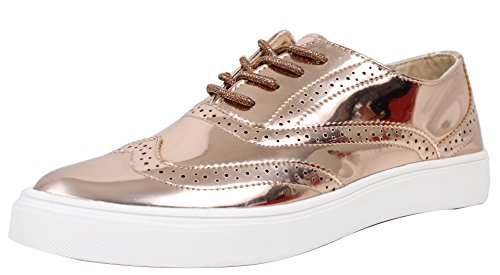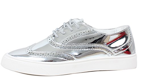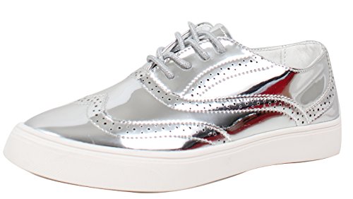 Cape Robbin Women's Faux Metallic Leather Oxford Lace Up White Rubber Soles Shoes