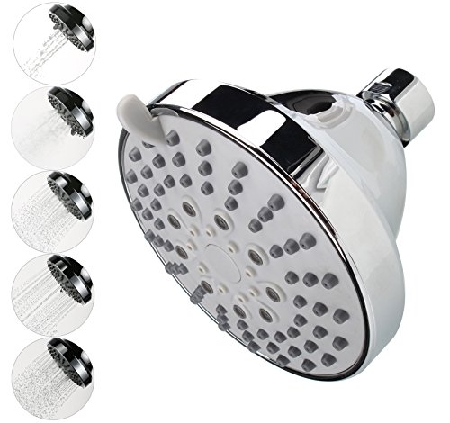Bathroom Round 4 inches diameter 6 setting Fixed Shower Head 68 jets for max performance.