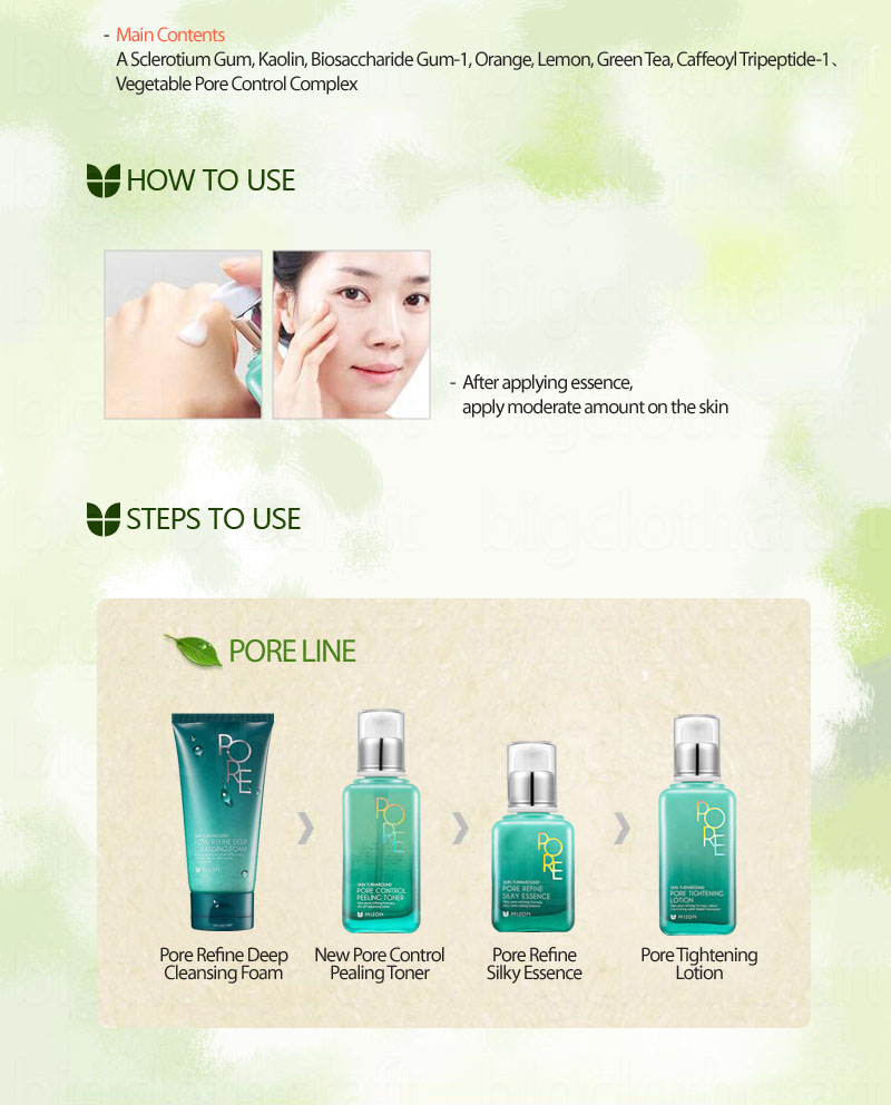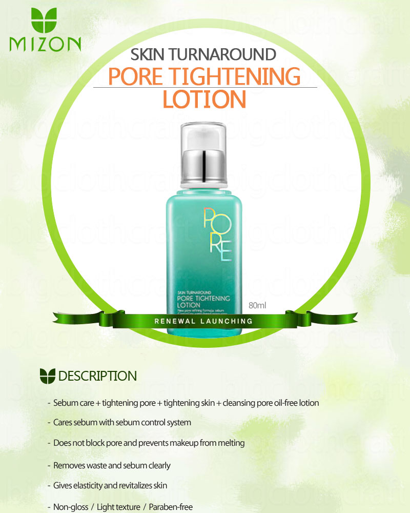 DESCRIPTION - Sebum care+tightening pore + tightening skin + cleansing pore oil-free lotion - Cares sebum with sebum control system - Does not black pore and prevents makeup from melting - Removes waste and sebum clearly - Gives elasticity and revitalizes skin - Non-gloss/ Light texture / Paraben-free