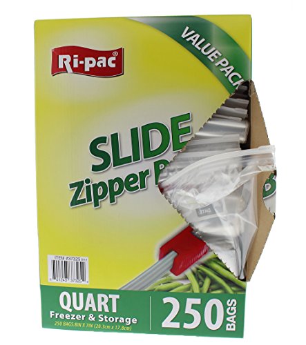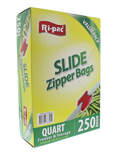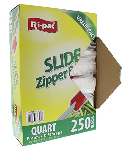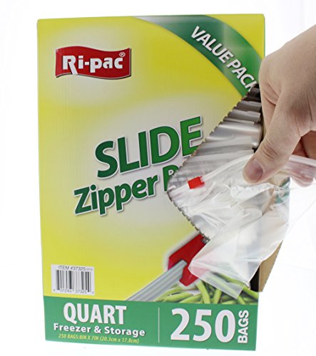 Ri Pac Quart Slide Zipper Sandwich and Snack Bags - 250 Count - Food Storage for Kids Lunch
