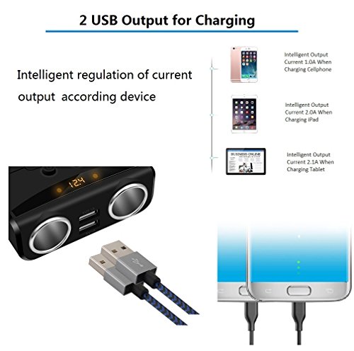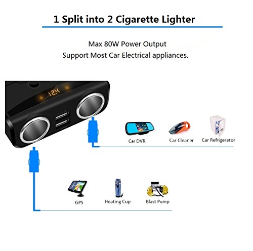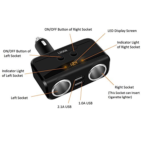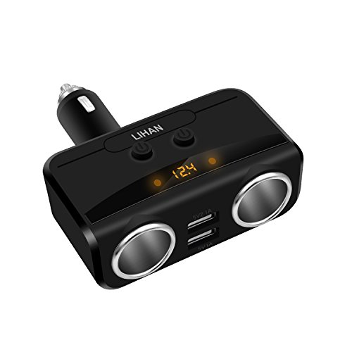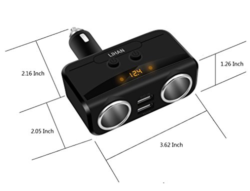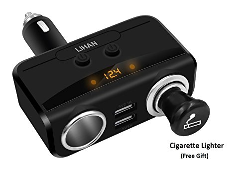 -. Title : LIHAN Car Charger Adapter, 2 Socket Cigarette Lighter Power& Dual USB Outlet Splitter with 12/24V Voltage Display Compatible for iphone,ipad,tablet,Galaxy,HTC,LG