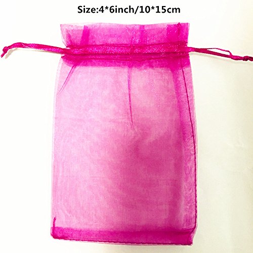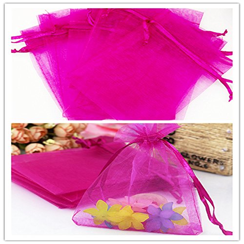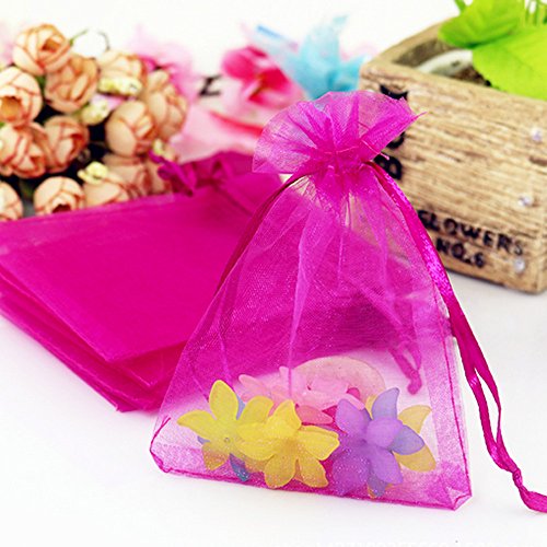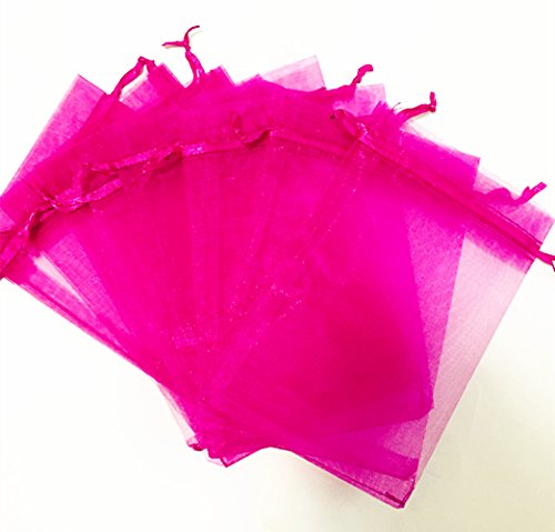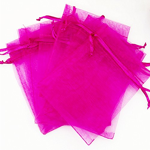 Organza Bags for Wedding Party Jewery Gift Candy Bags (100PCS, Hot Pink)