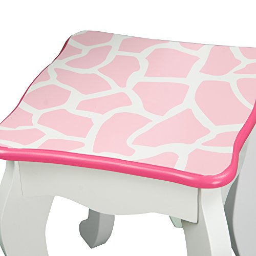 Give your diva a funky place to get beautified and indulge in the latest of fashion with the Fashion Prints Zebra Vanity & Stool Set. Gorgeous hot pink zebra print decorates the vanity for kids while white trim blends into the design. Comes with a sturdy stool and drawer space to store all of her favorite fashion accessories.