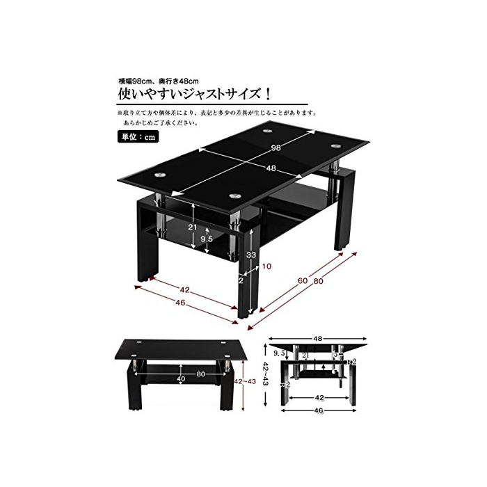 사이즈:전체/폭98×(길이)깊이48×높이42~43cm 유리 (책상이나 카운터의) 널찍하고 평평한 윗부분/폭98×(길이)깊이48×두께0.6cm