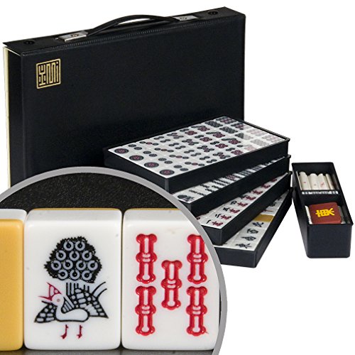 Our popular and economical Japanese standard mahjong set. This modern variant is commonly played in Europe and used with the European Mahjong Association. Rarely seen in the United States, this game set is for the Japanese version of mahjong. Japanese mahjong makes use of ''riichi'' scoring rules, and a unique tile called the ''Dora'' tile which throws an element of luck and uncertainty into the game. Japanese mahjong is also the standard mahjong game in much of Europe. White and yellow, strong, scratch resistant melamine tiles.Feature