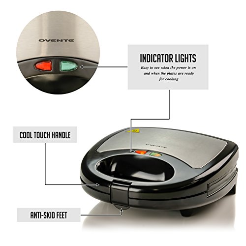 Start the day right with your perfect breakfast! Ovente strives to give you the convenience you need by introducing our time-saving Electric Sandwich Maker that comes with 3 Switchable Non-Stick Coating Plates for making hot, tasty sandwiches, crispy waffles, or grilled meats. We care for your health and productivity, so we make safe products with practical, time-saving features. Unlike other sandwich makers, Ovente's Non-Stick Electric Sandwich Maker is easy to clean due to its detachable plates. Its detachability prevents the accumulation of germs caused by food and oil residue on the appliance. Ovente's Electric Sandwich Maker is powered by 120V and 750-Watts that make cooking easier and faster. It also has LED indicator lights that let you know when your food is ready. If you are a busy person with a long day ahead, this sandwich maker is for you. Some people skip breakfast just to get to work early, but with this sandwich maker, you'll never skip breakfast again! Say goodbye to rushed mornings and hello to a healthier and more punctual you! Aside from these benefits, this device also offers safety, stability, and comfort with its Cool-Touch Handle and Anti-Skid Feet. Feel like visiting your family members or friends over the weekend? Bring along your Ovente Electric Sandwich Maker and show them how much they mean to you by making them delicious sandwiches, waffles or even steaks! Imagine the possibilities with the Ovente Non-Stick Electric Sandwich Maker.