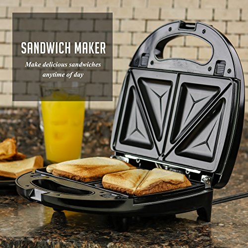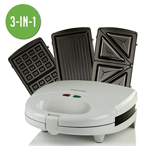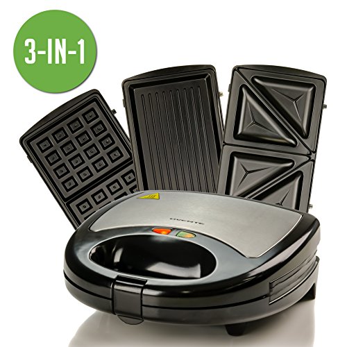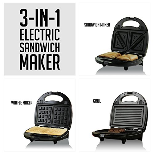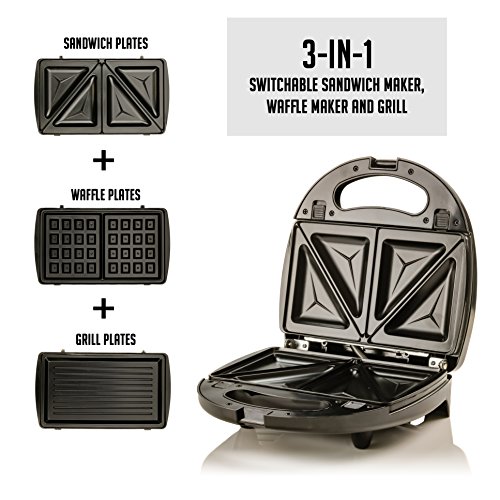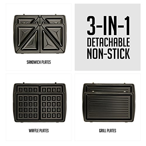 3-IN-1 SWITCHABLE SANDWICH MAKER, WAFFLE MAKER, AND GRILL - It comes with 3 interchangeable plates (sandwich, waffle and grill plates) to make quick, hot, and delicious meals at ANY time of the day.