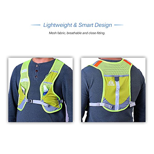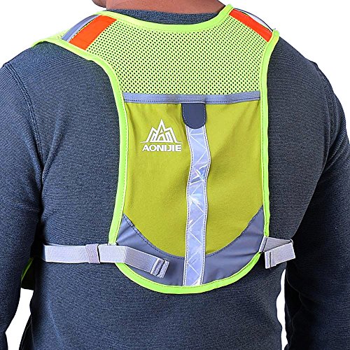 Features: REFLECTIVE STRIPES: High reflective material which is quite luminous at any light ray at night ensures safe running or cycling at night. LIGHTWEIGHT, SUPERIOR QUALITY SMART DESIGN: The running vest is made of lightweight water resistant Nylon; even the zipper is of superior quality and is sure to work smoothly for longer.? MULTI-FUNCTIONAL POCKETS: Enough pockets and pouches that can store items like cell phone, keys, thin raincoat, 250ml(8.45 Oz) water bottle, hydration bladder and other items for outdoor activities. USER-FRIENDLY MULTI-APPLICATION: Just wear it with the adjustable elastic bands, for night walking, cycling, hiking, climbing trail and all other outdoor sports and exercise. Perfect for traveling, camping, fishing, hunting and wearing at concerts, fairs or when you want your belongings to be safe.