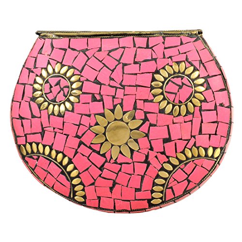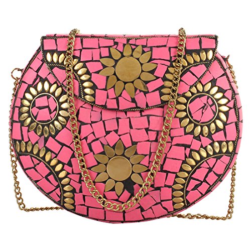 -. Title : Alvi Handmade Antique Metal Clutch Purse Wallet hard Handbag with Strong Golden Chain Multi Elipse Shape for Women MultiColor 17x14x6 cm