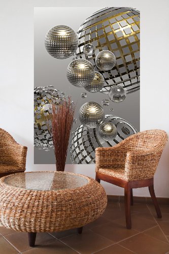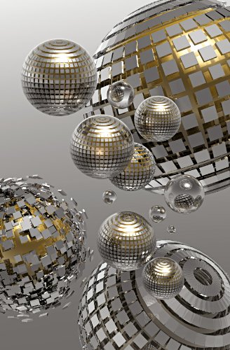 Metallic silver and gold orbs offer a contemporary feel to this unique single panel wall mural.