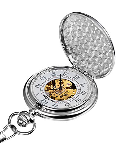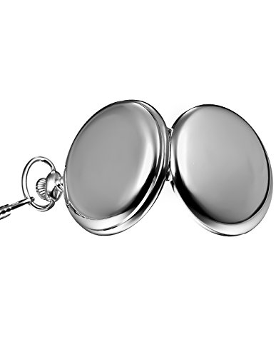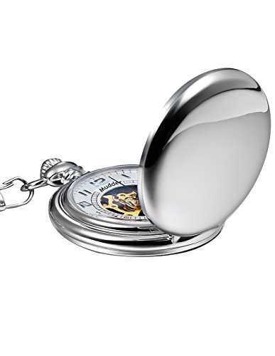 -. Title : Mudder Classic Smooth Surface Silver Mechanical Pocket Watch with Chain
