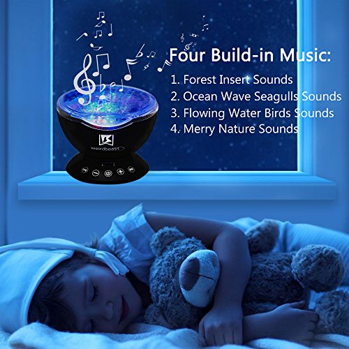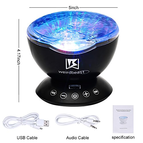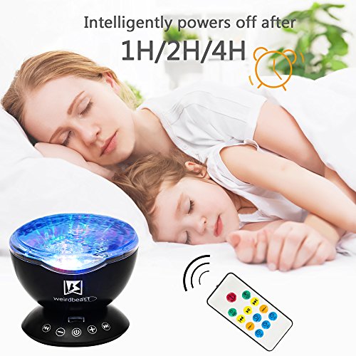 GENERATION 3! WELCOME TO THE NEW SEA WORLD! Weirdbeast Generation 3 Ocean Wave Nightlight with four relaxing audio presets mimicking nature. Remote control included. Auto Power Off Timer. A breeze to operate!