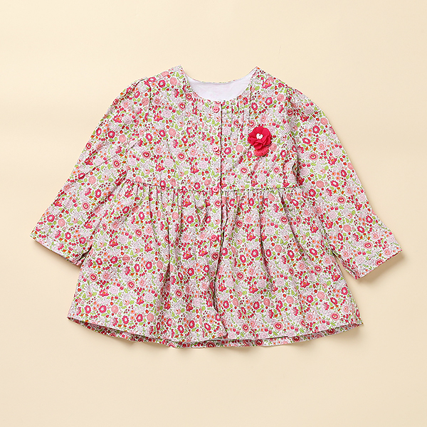 앞 전타스타일로 입고 벗기 편한 제품입니다가슴의 코사지 장식이 사랑스러움을 더욱 강조합니다