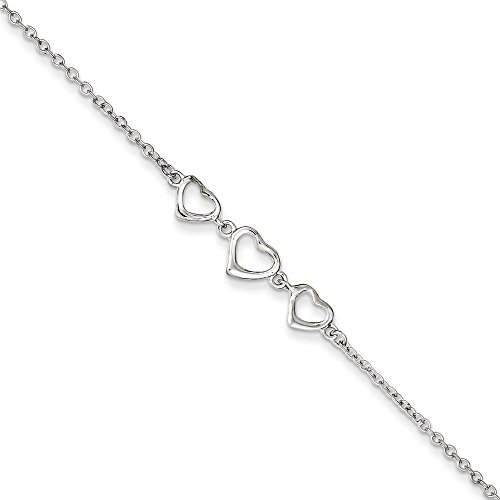 -. Title : Sterling Silver 10 +1 In Ext Three Hearts Anklet