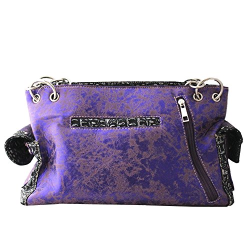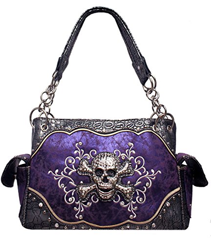 -. Title : Concealed Carry Premium Rhinestone Skull Embroidered Floral Women's Handbag with Matching wallet in 3 Colors (Purple)