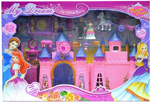 -. Feature : MY DREAM CASTLE TOY DOLL PLAYSET: with Lights and Sounds, Royal Figures and Accessories make it fun to imagine and play out stories / FIGURES AND CASTLE ACCESSORIES: Prince and Princess Figures, Horse and Carriage, Castle Play Doll House, Furniture, Accessories / LIGHT AND SOUND EFFECTS: Castle Lights Up and Makes Real Fairy-tale Sound / SIZE DIMENSIONS: Approx. Castle Dimensions, Width: 18.5" by 2.5" Height: 9" / RECOMMENDED for children Ages: 3+ years. Contains some small parts. 100% safe non-toxic in accord with toy safety standards. Makes the perfect birthday gift or exciting Christmas holiday present for girls and boys