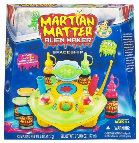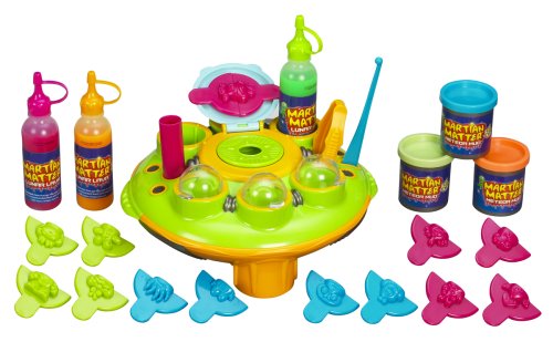 Get ready for some creative fun that's totally out of this world! Pop open this alien spaceship to discover all sorts of alien-making technologies, including LUNAR LAVA gel and reusable METEOR MUD compound, which are used to create alien forms! Mix and match the 14 different half-molds to create more than 90 different wacky alien combinations! Place your finished alien creations in the spaceship's pods to "fly" the aliens home! Or use the tools to flatten or dissect your alien creatures! Dream up endless adventures and experiments for your aliens and creative fun that's completely cosmic! Spaceship playset comes with 14 alien half-molds, plastic knife, roller, tweezers, cutter, 3 two-ounce bottles of LUNAR LAVA gel and 3 two-ounce cans of METEOR MUD compound.Feature