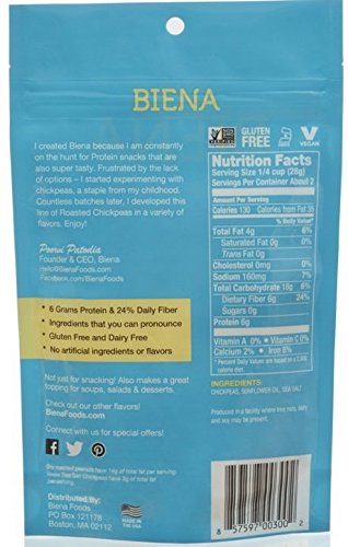Biena Roasted Chickpea Snacks, Sea Salt, 5 Ounce, 8 Count