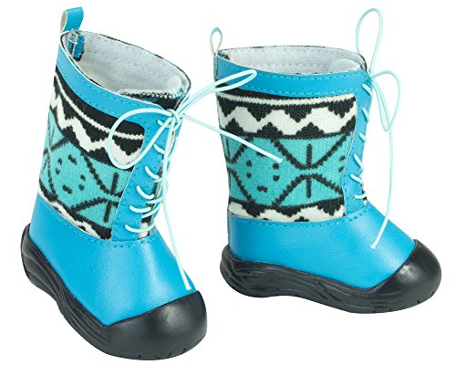 This is a perfect set for any doll who loves the snow! The soft long sleeve shirt has blue, teal white and black print which matching the adorable and durable snow boots. Black leggings and white puffy vest also included in this 4 piece set. Doll and Ear Muffs Not Included. © 2015 Sophia's- All Rights Reserved. Not affiliated with American Girl®, Reg. Trademark of American Girl, LLC.Feature