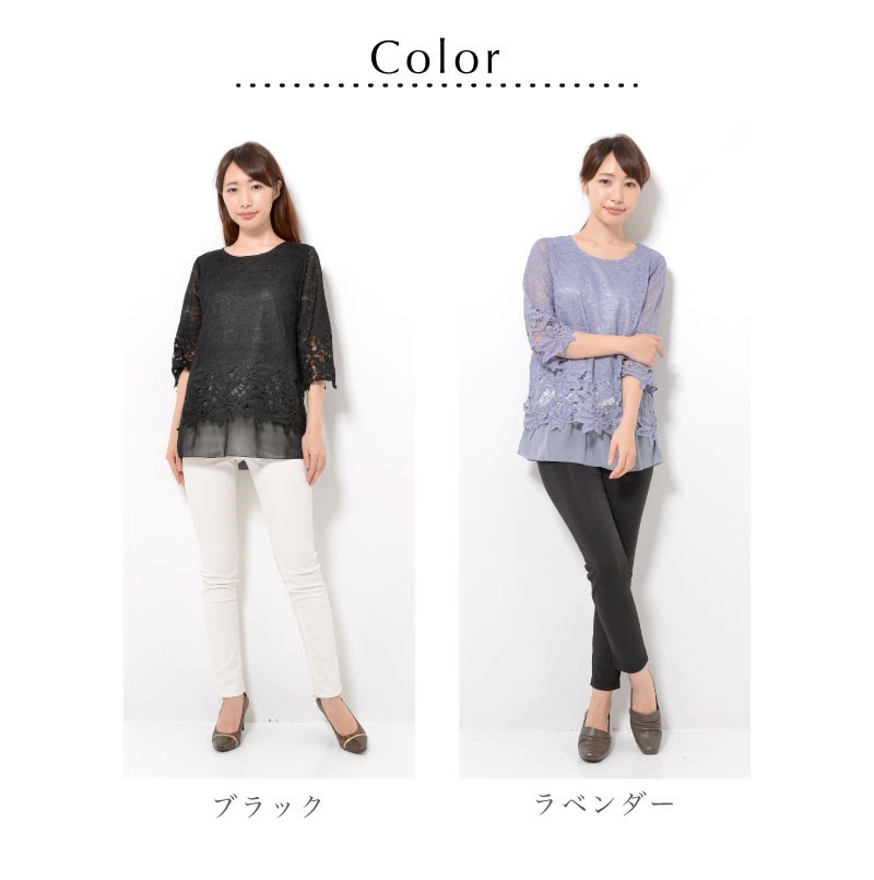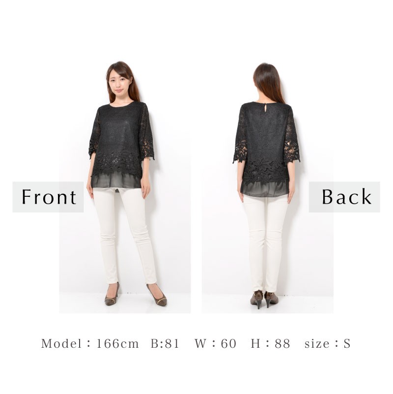 Sサイズ バスト92(72-80) 着丈66 袖丈41 肩幅35 Mサイズ バスト98(79-87) 着丈68 袖丈41 肩幅37 Lサイズ バスト104(86-94) 着丈68 袖丈41 肩幅39 LLサイズ バスト110(93-101) 着丈70 袖丈41 肩幅41 3Lサイズ バスト116(100-108) 着丈70 袖丈41 肩幅43 |