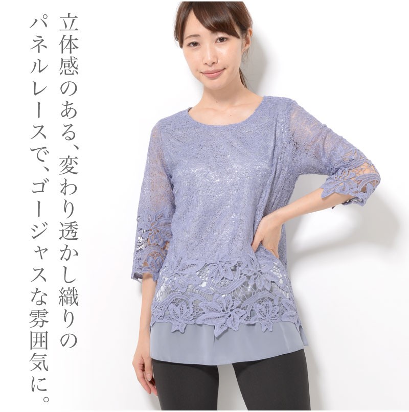 パネルの下にはシフォン生地をのぞかせて、おしゃれな重ね着風のデザインに。
