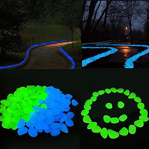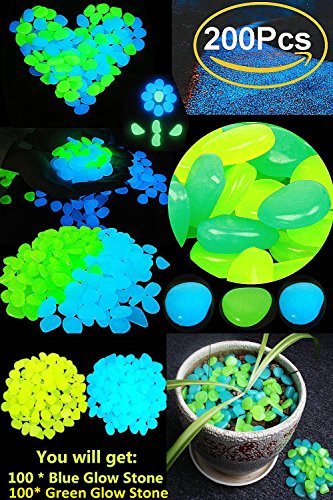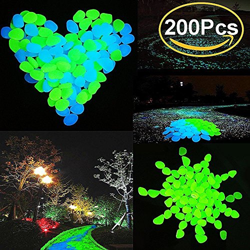 - FOR EASY DIY OUTDOOR DECOR----Includes 200 PCS of glow in the dark pebbles provide a beautiful yet subtle outdoor lighting solution and are ideal to be used in different exciting applications as they are endlessly versatile in many different media. Scatter them randomly to create a striking effect on your walkway, steps, garden, fish tanks, swimming pool,rockeries, flowerpots and flower beds.
