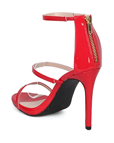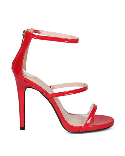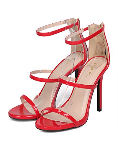 (Alrisco)/Women's/Sandals/DIRECT FROM USA/Women Patent Open Toe Triple Band Stiletto Sandal - HG57 by Qupid Collection