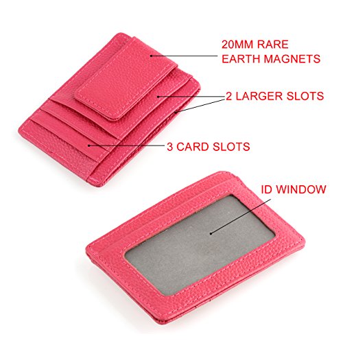 -. Title : Minimalist Front Pocket Wallet RFID Blocking Magnetic Money Clip Thin Slim Wallet Genuine Leather Card Holder for Men Secure ID Credit Mini Card Case (Pink)