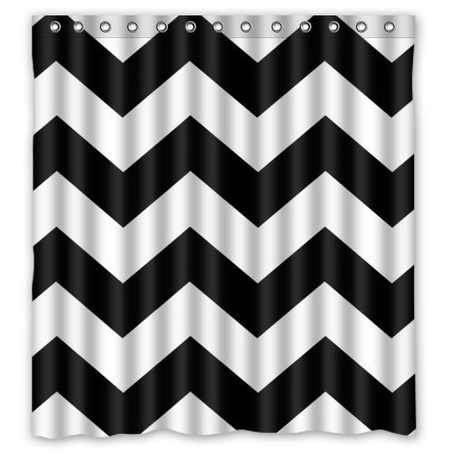 YEHO Art Painting Black and White Chevron Zigzag Pattern Waterproof Bathroom Shower Curtains Shower Rings Included - Polyester Fabric- 66 x 72 Inch