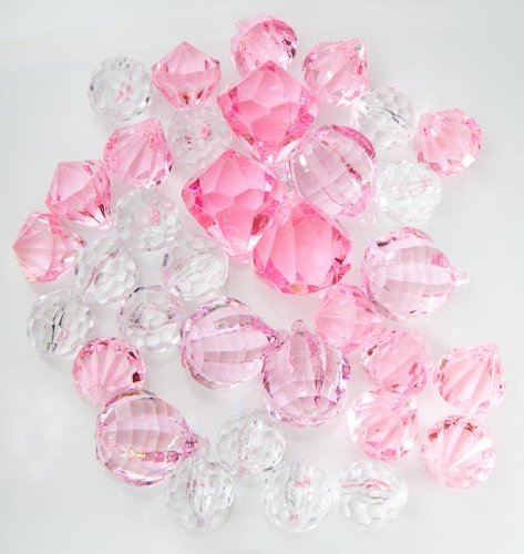 Translucent Clear, & Pink Assorted Shaped Acrylic Gems for Vase Filler, Table Scatters or Decorations