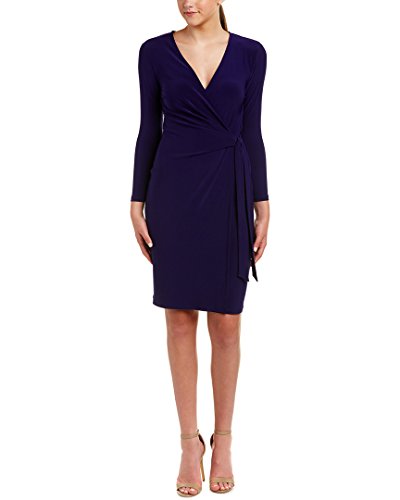 Anne Klein Women's Solid Faux Wrap Dress, Poppy, 2